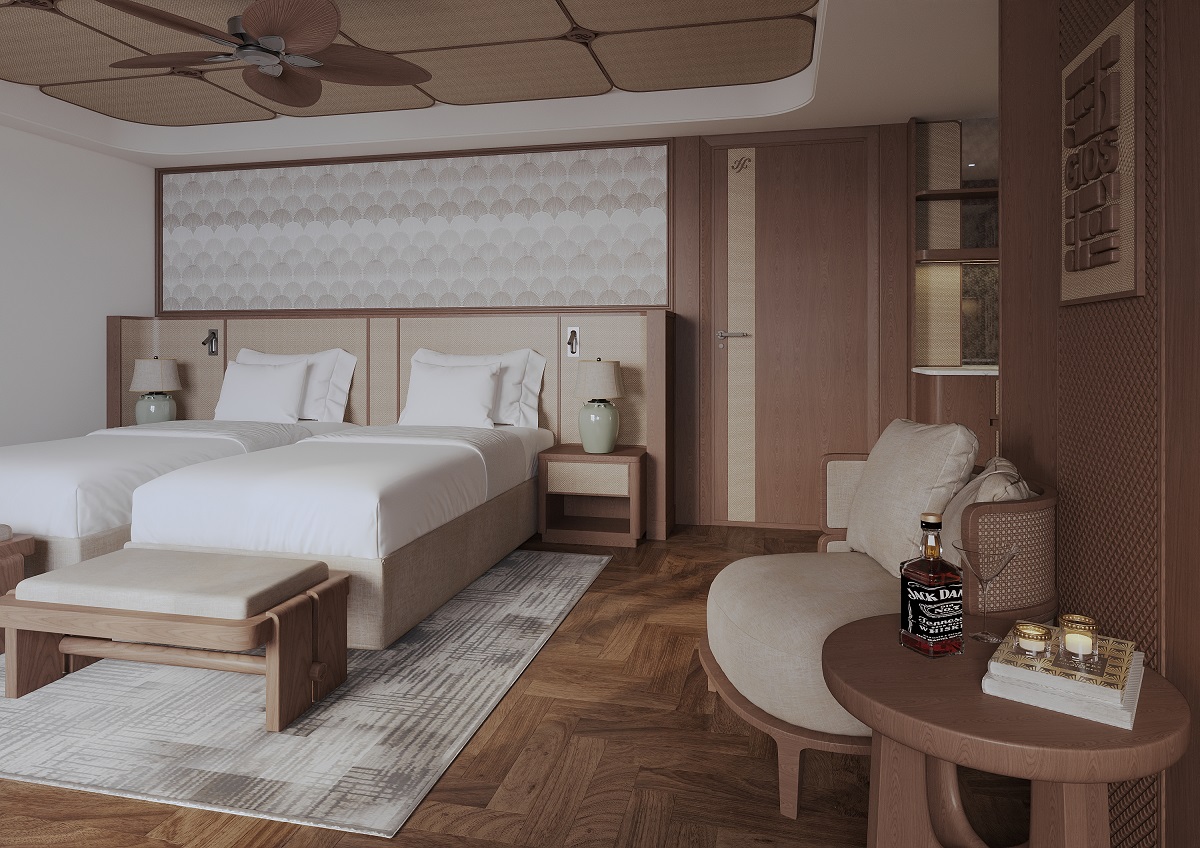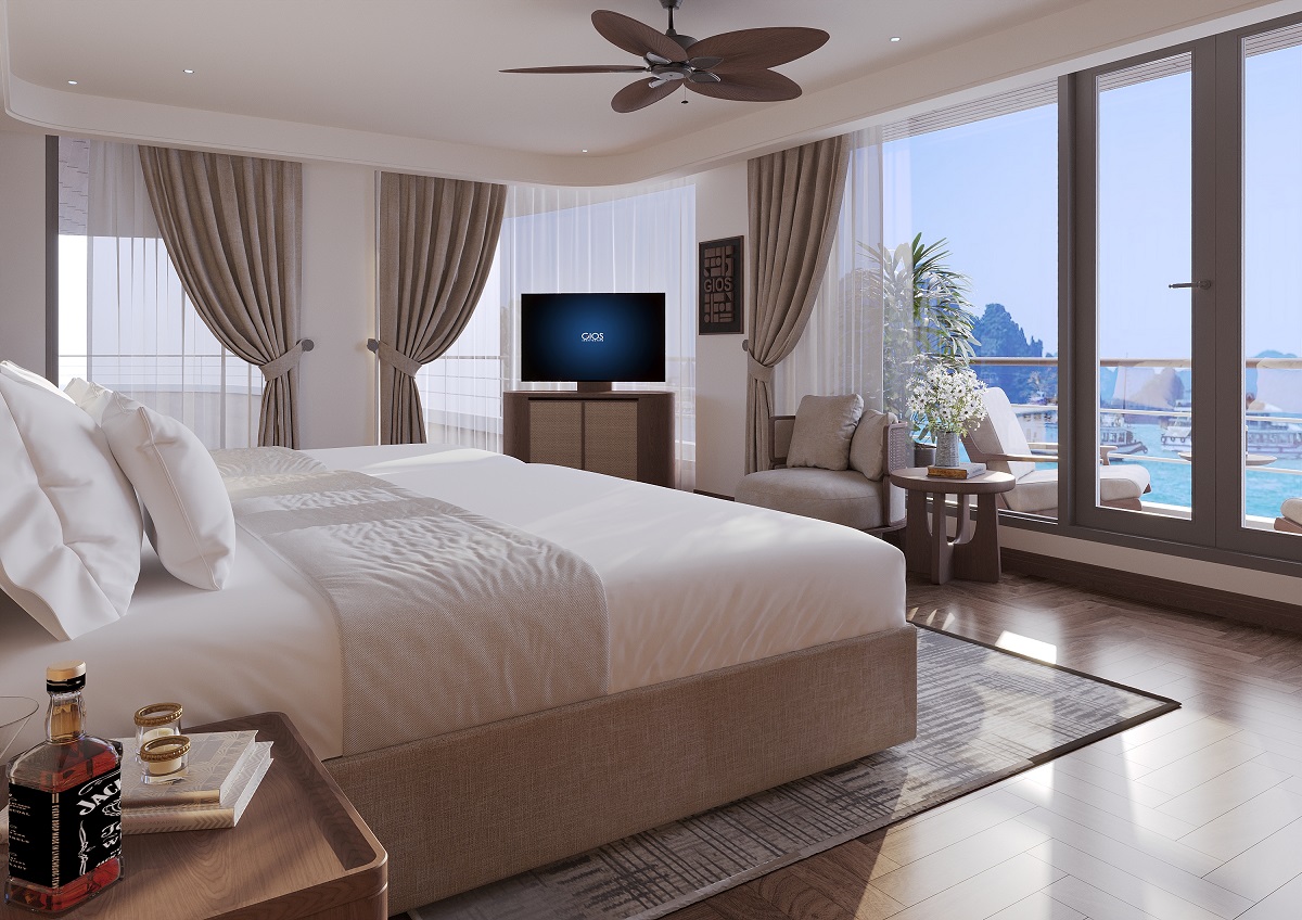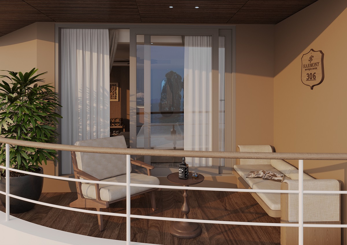 Discover the perfect balance of grandeur and intimacy in our Harmony Terrace Suite.Spanning a generous 44m² on the Second Deck, this suite is a haven of sophisticated comfort. Its crowning jewel is the expansive private terrace with dedicated sunbeds, offering a secluded space to embrace the bay’s majesty in total privacy. Featuring handcrafted interiors and a signature ocean-view bathtub, it is designed for those who seek an elevated retreat and a personal connection to the sea.